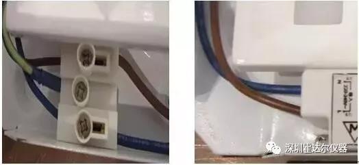某LED面板灯传导测试不合格,该灯具使用二类驱动(不带地线),而整灯是一类灯具(该灯具使用金属外壳,金属外壳直接引出地线,如图所示):